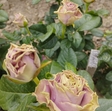 Це ефектний сорт чайно-гібридних троянд, відомий своїм унікальним лілово-фіолетовим забарвленням із зеленкуватим відтінком по краях пелюсток.Бутони мають келихоподібну форму, край пелюсток хвилястий.Діаметр квітки 8-10см.Висота 80-100 см., ширина 50-60см.Стійка до захворювань, довго стоїть у зрізі.Колір бузково-фіолетовий з зеленим відтінком.