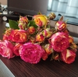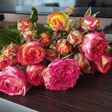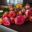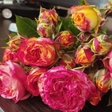 (De Ruiter Нідерланди)Піоновидна, спрей троянда.Мідно жовті пелюстки з яскравою червоною облямівкою.Діаметр квітки 9 см.Бутони щільні, набиті.Цвіте суцвіттями, до 10шт.Висота 80см.,ширина 50см.Не вигорає на сонці.Стійкість до захворювань висока.Вирощується на клумбах, а також підходить для вирощування на зріз.